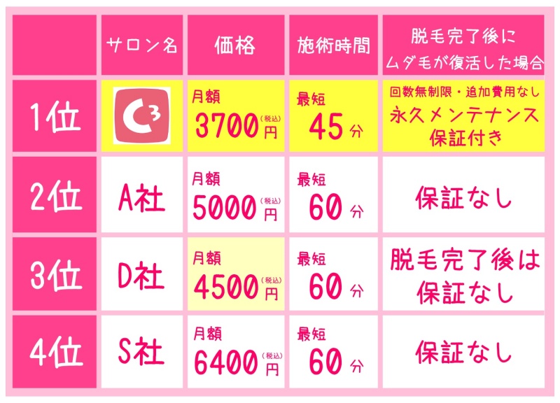 シースリーは他のサロンと比較して