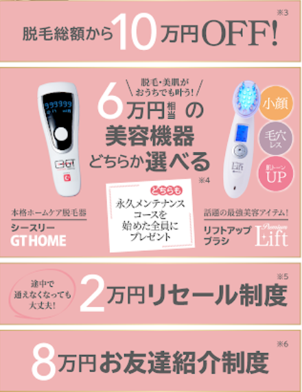 脱毛総額から10万円OFF