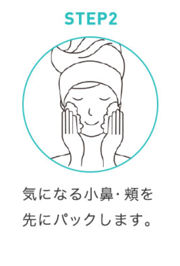 気になる小鼻・頬を先にパックします。