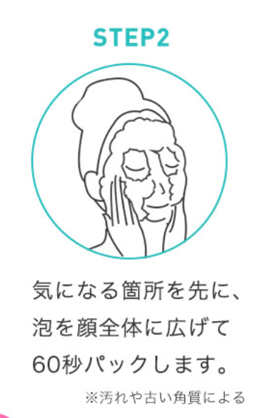 気になる箇所を先に、泡を全体的に広げて60秒パックします。