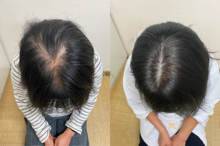 子供に「ママ、ハゲ過ぎてて恥ずかしい!」と言われて使用を決意。もっと早く使えばよかったと思います。明らかな変化を感じられて大満足です!もう子供に恥をかかせたくない!