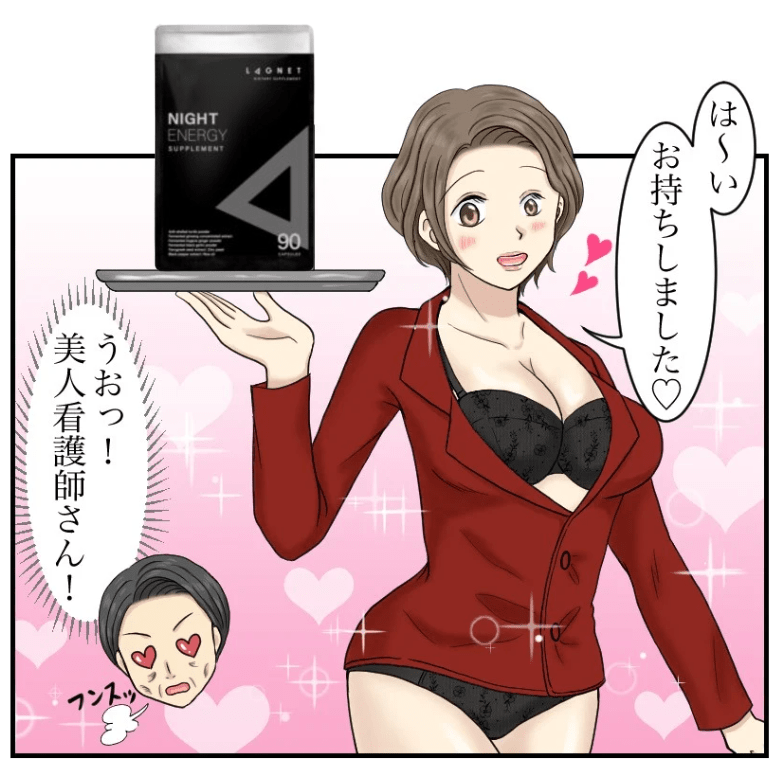 私が60代で妻が40代、年齢差から妻の求めるSEXを叶えられませんでした。でもナイトエナジーを飲み始めてからというもの、逆に自分が毎晩求めるようになってしまい勃起が止まりません(笑)これはバイアグラより絶対良いです。