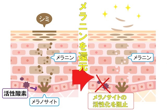 メラニンを還元し、シミをごっそり落とす成分